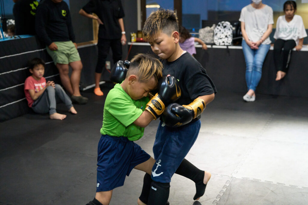基礎から取り組むコースと試合出場を目指す選手コースがあります。試合に挑戦したい方も大歓迎です。ジュニアキックボクシングコースの次の時間帯はは成人のキックボクシングコースのレッスンを行っているので親子で通うことも可能です!お気軽にご相談ください!